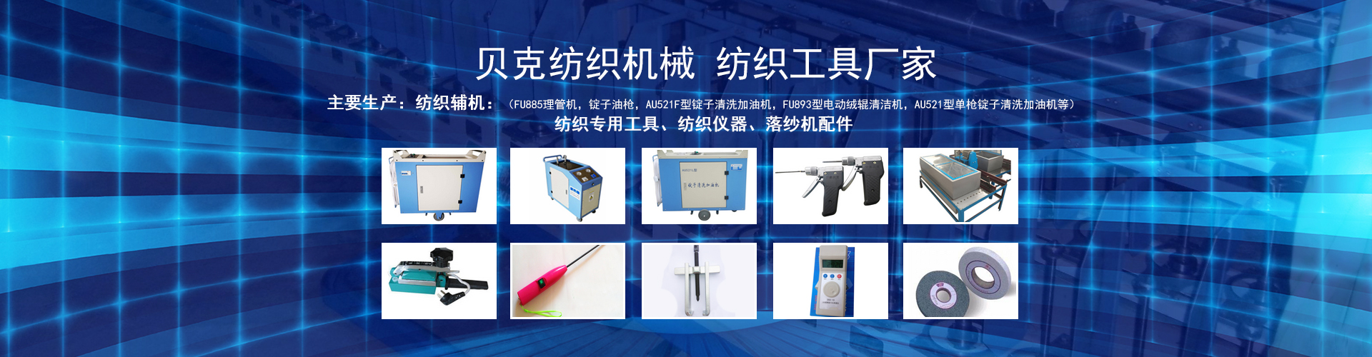 廠家直銷產(chǎn)品,歡迎新老客戶到廠參觀安徽貝克紡織機(jī)械設(shè)備有限公司座落于皖東天長市東郊S312省道109km仁和段,毗鄰江蘇南京、揚(yáng)州、水陸交通十分便利,環(huán)境優(yōu)美。 公司是主要產(chǎn)品有:紡織專用工具(前紡、后紡保全、保養(yǎng)、平車、全套專用工具和通用工具),皮輥房系列(皮輥磨床、壓圓機(jī)、套皮輥機(jī)、皮輥切割機(jī)有機(jī)械式和液壓式兩種供選擇),梳棉輔助機(jī)械(刺輥包磨機(jī)、清刷蓋板機(jī)、金屬鋸條倒料機(jī)蓋板踵趾面銑削機(jī)、包針布慢速傳動(dòng)裝置 ……